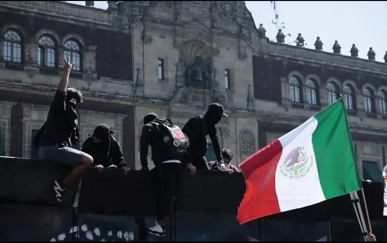 - Durante las protestas del sábado 15 de noviembre, en Palacio Nacional hubo enfrentamientos entre personas encapuchadas y elementos de la policía capitalina